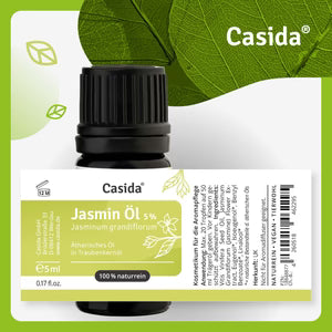 Jasminöl wird aus den Blüten des Jasminstrauchs gewonnen, der ursprünglich in China und Indien beheimatet ist. Die Blüten werden in den frühen Morgenstunden geerntet, wenn sie den höchsten Gehalt an ätherischem Öl enthalten, um die bestmögliche Qualität zu gewährleisten. Der Herstellungsprozess von Jasminöl ist aufwendig und erfolgt meist durch Wasserdampfdestillation. Für die Gewinnung von nur einem Liter Jasminöl sind etwa 1000 Kilogramm Blüten erforderlich, was es zu einem besonders kostbaren ätherischen Öl macht. Jasminöl ist aufgrund seines zarten, blumigen Duftes in der Parfümindustrie sehr beliebt und wird häufig in Duftkompositionen verwendet. Es kann auch in der Hautpflege eingesetzt werden, um das allgemeine Wohlbefinden zu steigern, da der Duft oft als angenehm und beruhigend empfunden wird. Das Casida Jasminöl wird aus dem Vereinigten Königreich bezogen und lässt sich gut mit anderen ätherischen Ölen wie Rosmarin, Bergamotte oder Lavendel kombinieren. Es kann in verschiedenen Anwendungen wie Massageölen, Duftlampen oder als Bestandteil in kosmetischen Produkten verwendet werden.