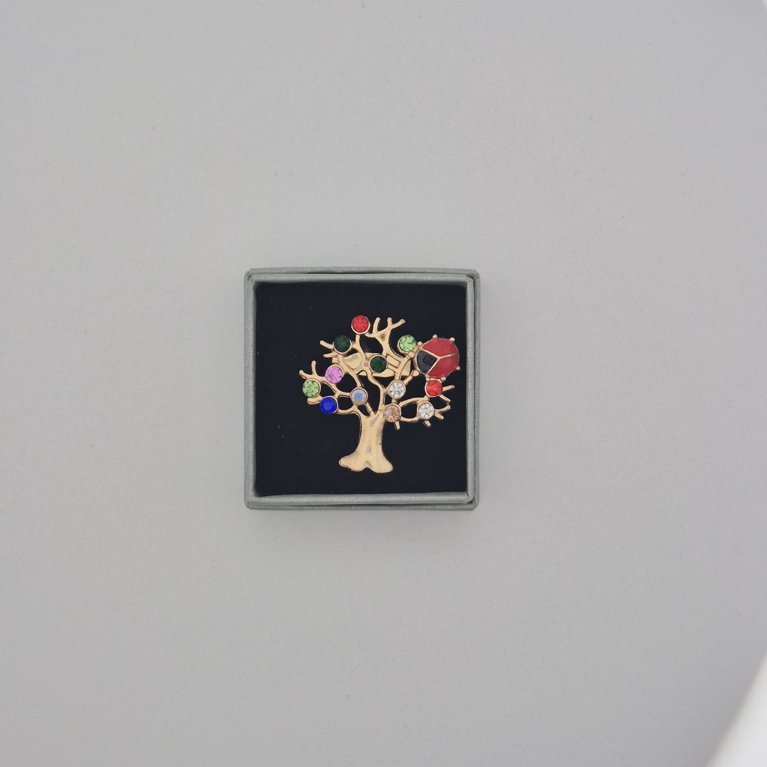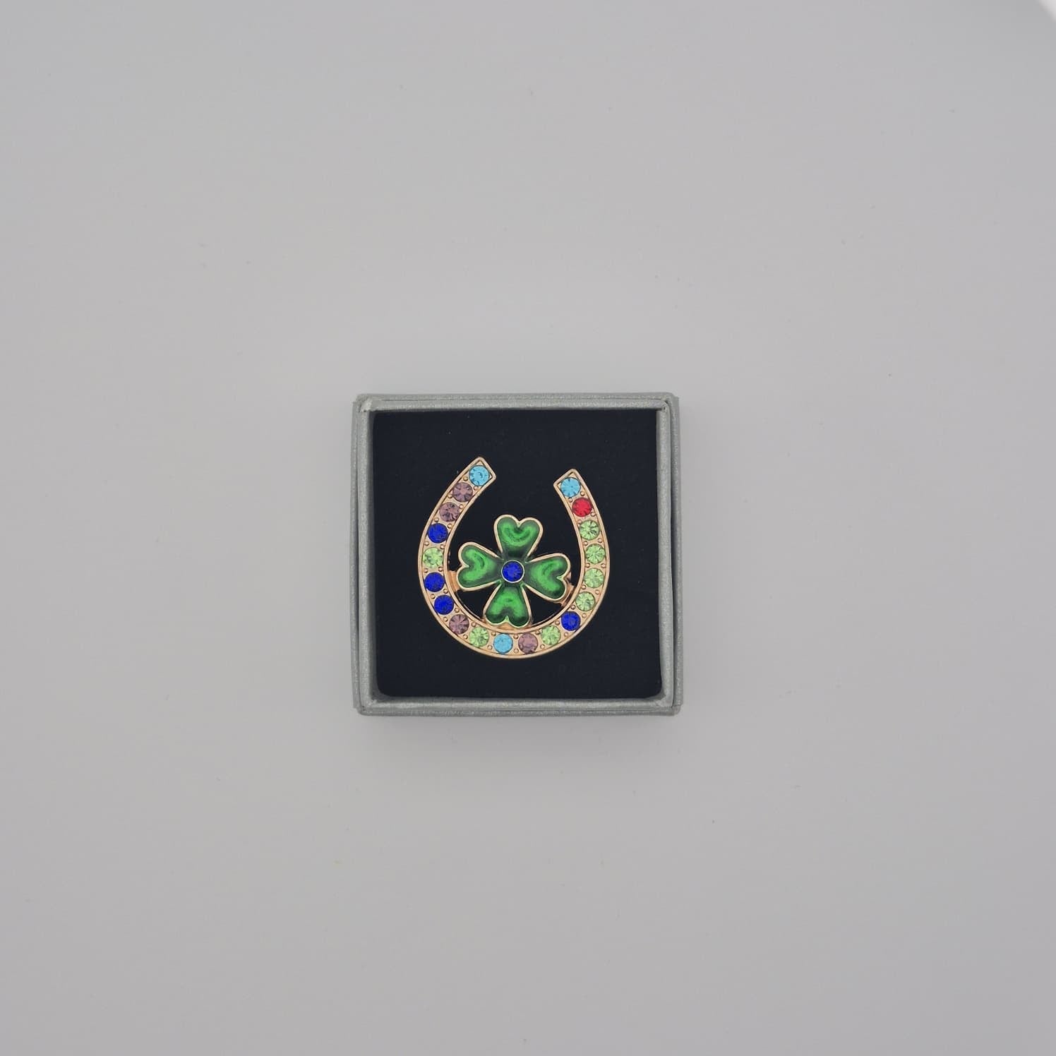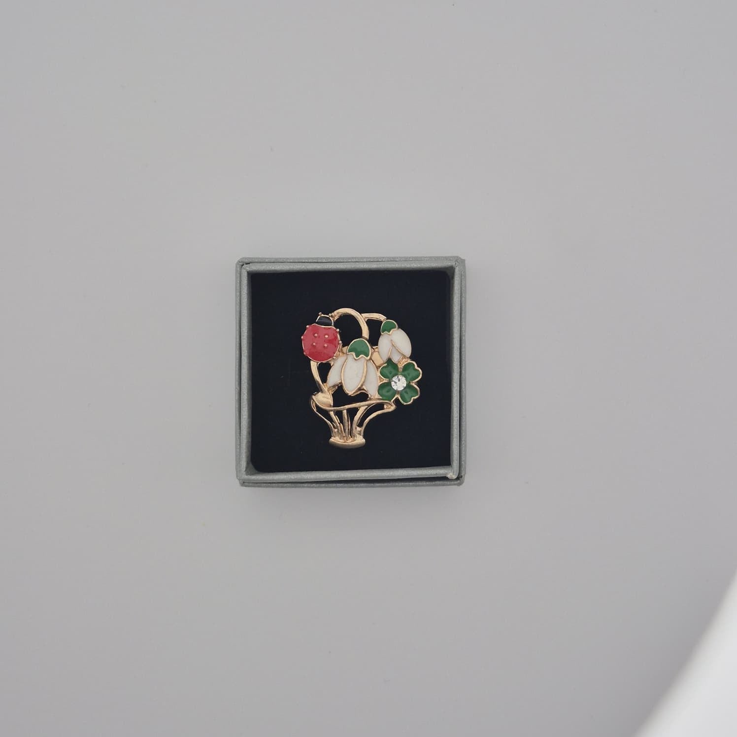 Die Brosche wird in einer kleinen Einzelbox mit ca. 4,5 cm Durchmesser geliefert. Die Verpackung schützt das Produkt zuverlässig und sorgt gleichzeitig für eine ordentliche, ansprechende Präsentation. Die Einzelverpackung ermöglicht eine direkte Platzierung auf Regalen, Verkaufsständen oder in Vitrinen und spart Zeit bei der Vorbereitung für den Verkauf.